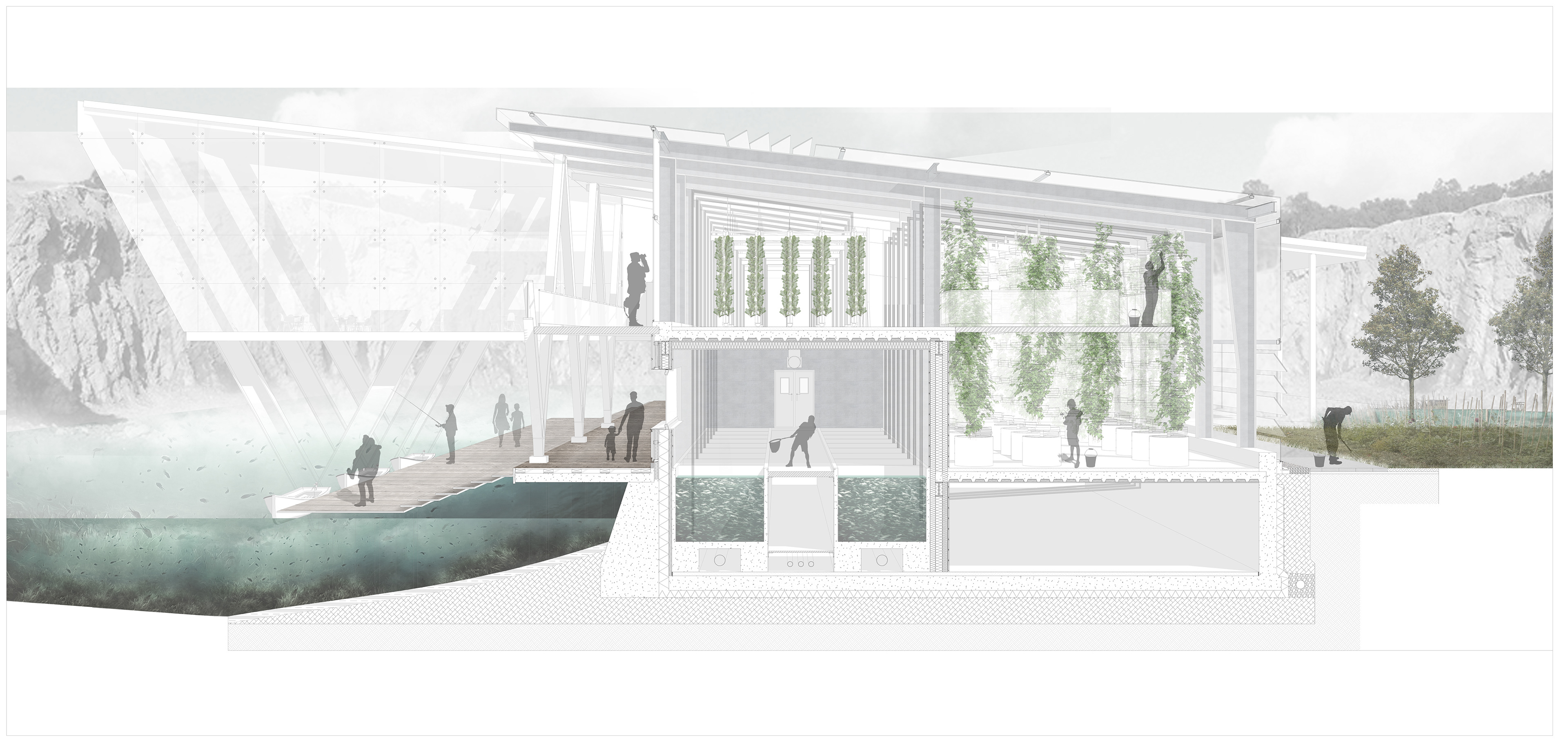 Academic project based in Quidhampton Quarry, Salisbury. This project explores concepts related to aquaponics, sustainability and community participation.